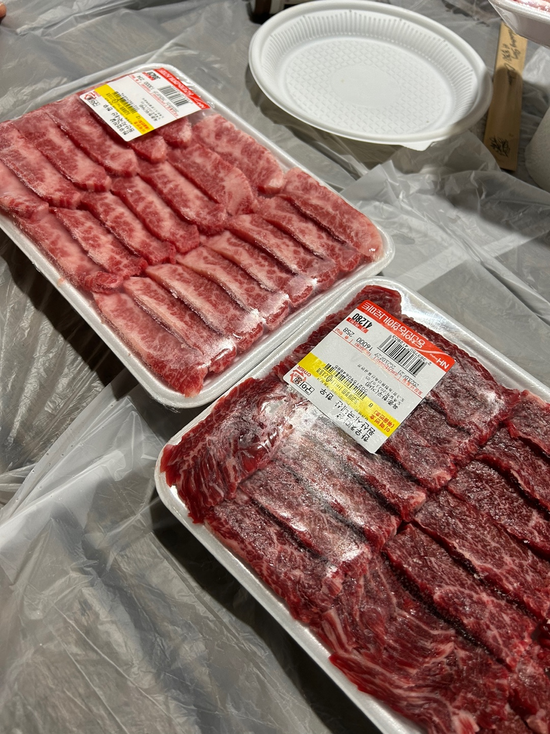 지금 보이는 사진에 있는 고기보다 훨씬 많이 사왔어요~