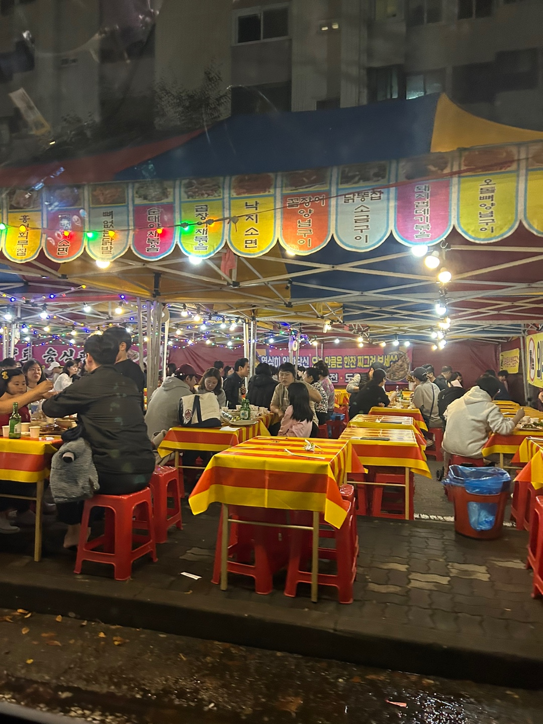 이렇게 이쁘게 야시장을 열었어요! 구경을 하기전에 엄청 큰 포장마차가 있길래 맥주를 한잔하러 들어왔죠!