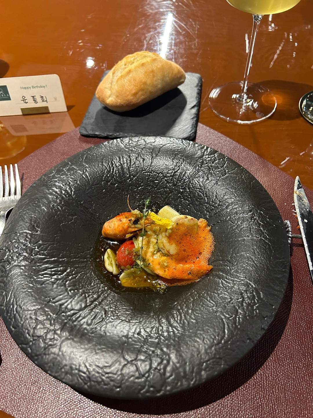 와인페어링 3잔 이외에 생일 축하 서비스로 술을 한잔 주셨는데요.